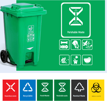 • Color Coding: Industry-standard hues (blue/green/grey) or medical-grade coding (red biohazard, yellow infectious waste) using eco-pigments.
